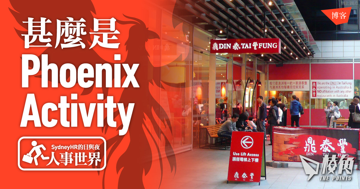 點解會無端提到鳳凰活動呢樣嘢呢?原因係最近有報道指出台灣著名嘅小籠包飯店「鼎泰豐」決定全面撤出澳洲,原因係之前被公平工作監察專員(Fair Work Ombudsman)重罰超過四百萬,原因係克扣工資同埋刻意隱瞞。除咗公司董事以外,當時嘅人士主管、以及協助佢哋請人嘅labour hire agency,都同樣受罰。經此一役,鼎泰豐決定唔再喺澳洲營運,於是乎就紛紛落閘,不過,佢哋被發現改頭換面後換湯不換藥,請返晒之前嘅同事,不過係另外一間嘅公司,同時間除咗賣小籠包之外,仲買多咗啲其他嘢,營運模式同之前非常之類似,因此就惹來「鳳凰活動」之嫌。