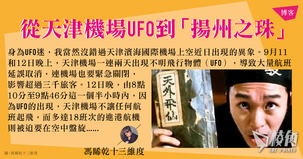 身為UFO迷,我當然沒錯過天津濱海國際機場上空近日出現的異象。9月11和12日晚上,天津機場一連兩天出現不明飛行物體(UFO),導致大量航班延誤取消,連機場也要緊急關閉,影響超過三千旅客。12日晚,由8點10分至9點46分這一個半小時內,因為UFO的出現,天津機場不讓任何航班起飛,而多達18班次的進港航機則被迫要在空中盤旋。