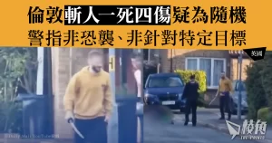 - 英國倫敦東北部周二發生一宗斬人案,一名男子先是駕車撞入Hainault地鐵站附近一幢民居,接着手持長刀攻擊,最終造成一名14歲男童死亡、四人受傷送院