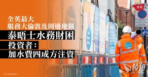 - 全英最大水務公司泰晤士水務傳出財困,投資者表明要求在2030年之前向客戶加價四成才會向公司注資