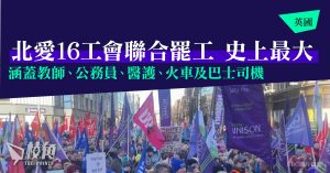 英國北愛爾蘭16個與公營事業有關的工會於1月18日(周四)舉行聯合大罷工,以爭取更佳的薪資待遇。該罷工行動號稱是北愛史上最大,有超過十萬人參與,並涵蓋了教師、公務員、醫護人員、火車及巴士司機等職業。罷工導致了北愛爾蘭多項公營服務受到了影響。