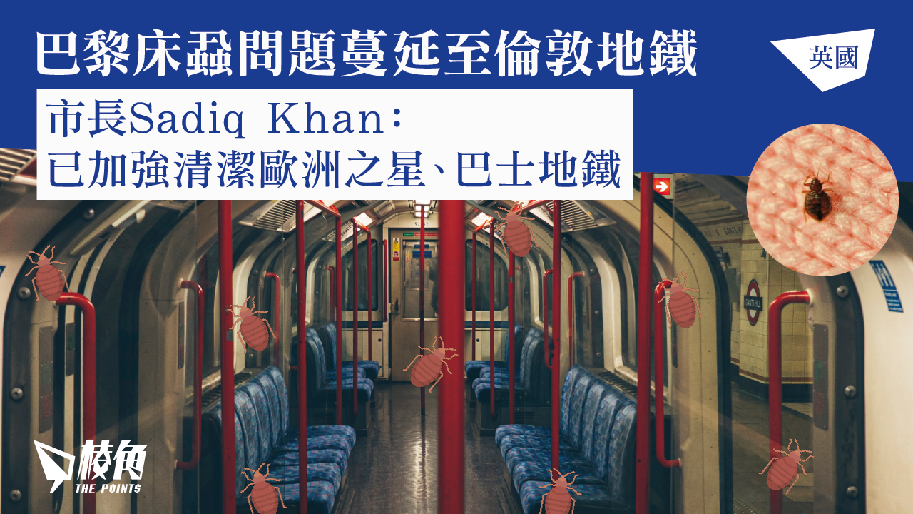 巴黎自月初起出現公共衛生問題,大量床蝨在交通工具、酒店、社交場所等出沒。距離巴黎約三小時車程的倫敦,亦相繼有人在地鐵車廂內發現床蝨,牠們繁殖能力強,存活率高,市民擔心一旦大規模擴散將難以杜絕。倫敦市長簡世德(Sadiq Khan)表示,已通知倫敦運輸局加強公共交通工具的清潔,亦與法國當局合作徹底清潔連接兩地的列車歐洲之星(Eurostar)。
