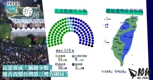 台灣大選結果塵埃落定,與選前普遍預期一致,民進黨賴清德因為在野勢力整合失敗,以不過半的四成得票率當選成為下任台灣總統,重演了陳水扁於2000年大選因對手分裂而勝出的戲碼。至於國民黨侯友宜以33.49%得票率居第二、民眾黨柯文哲以26.46%排第三,亦與選前絕大部份民調數字脗合,並沒有出現太大的意外。不過,雖然賴清德成功當選總統,民進黨整體形勢卻是「似勝非勝」,因為在立法院方面,民進黨立委席次減少10席至51席,在113席的議會中不再佔有單獨過半的優勢,賴清德將以弱勢政府上台,勢會令其施政備受挑戰。至於國民黨的議席則增加14席至52席,躍居立法院第一大黨,加上兩位無黨籍立委均與國民黨關係密切,其議席數雖亦未過半,但就有望能拿下立法院長之位,加強對行政機關的制衡能力。