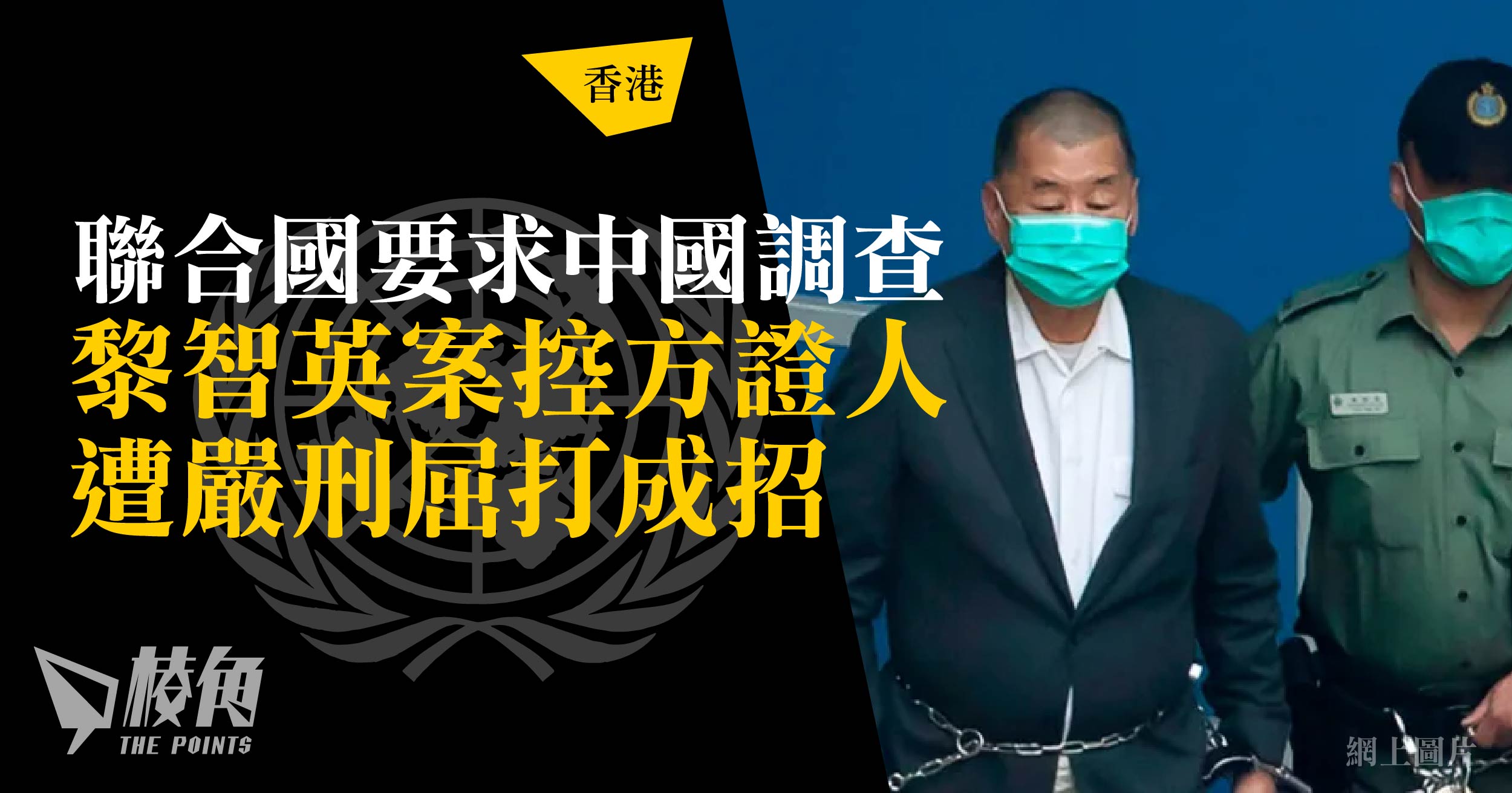 - 聯合國酷刑待遇特別報告員去信中國,要求回應黎智英案中控方證人是否因酷刑屈打成招