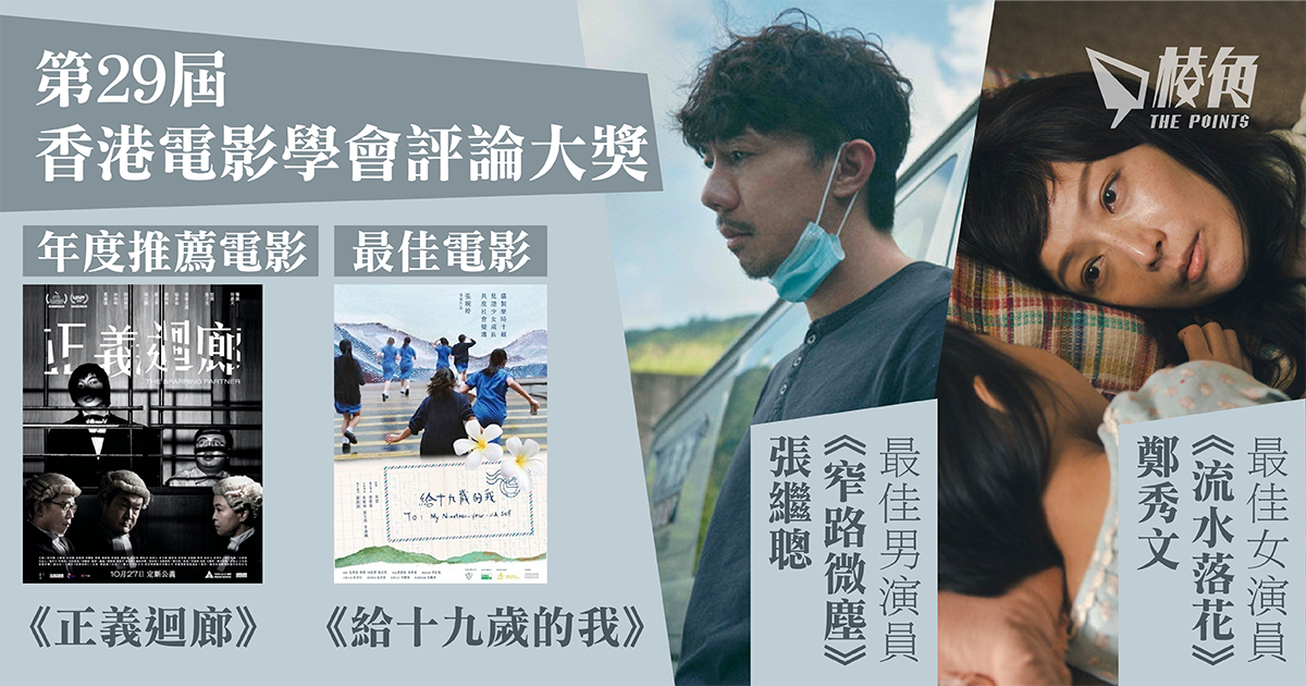 經歷了九小時討論及三輪投票,第29屆香港電影評論學會於星期日(1月15日)選出五個獎項及九部推薦電影,《給十九歲的我》奪最佳電影、《正義迴廊》為年度推薦電影。