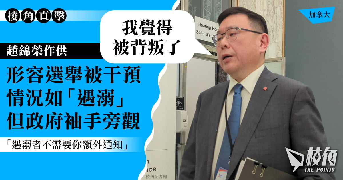 趙錦榮批評總理杜魯多作為政府首腦,需對無法保護民主制度被外國干預負責。他亦坦言如果早知會遇上這情況,他或不會選擇再參選。「作為一名移民,來在加國生活已不容易,而從政更具挑戰。」他亦在聆訊後對記者指,如下屆選舉時,防止外國干預的制度沒有改變,他相信不會再參與選舉。他亦提及,去年由前總督莊斯頓撰寫的報告,指沒有足夠證據顯示有外國干預的行為,但莊斯頓並沒有與他聯絡過。
