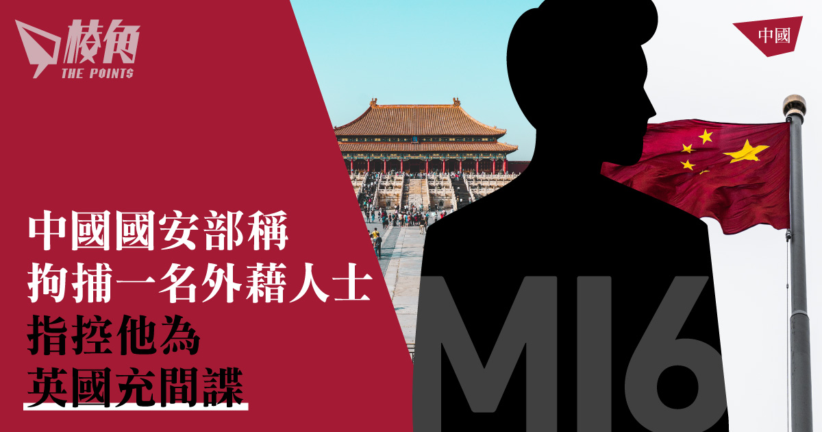 中國國家安全部周一於微信發文聲稱,拘捕了一名為英國軍情六處工作的黃姓間諜,指控這名任職於海外諮詢機構的外籍人士,經英國訓練及提供器材,多次在中國境內收集情報及發展間諜網絡,當中包括多份「機密情報」。英國暫未有就事件回應。