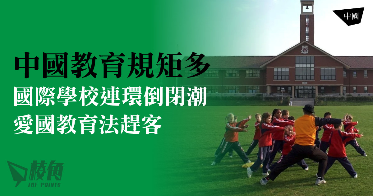 路透社報導,教育機構產業人士表示,受到教育機制朝令夕改,例如愛國教育法,加上經濟減緩等及外籍學生人數減少的影響,中國境內數十間國際學校與私校將倒閉或合併。德威英國國際學校(Dulwich College International)部分股東正洽商出售以中國為主的亞洲業務,再次顯示中國教育市場的動盪,迫令教育機構重整。