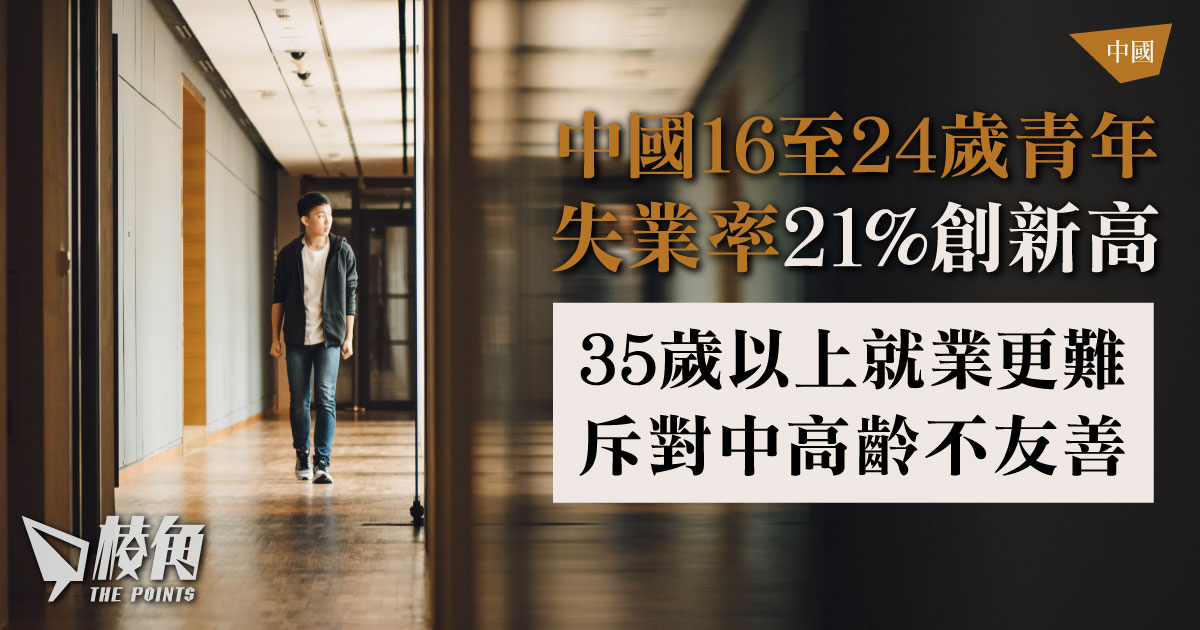 《南華早報》報導,正當中國當局致力於化解16至24歲的青年失業率創新高,中國青壯勞工感到被歧視,年齡超過35歲便遇上就業困難。
