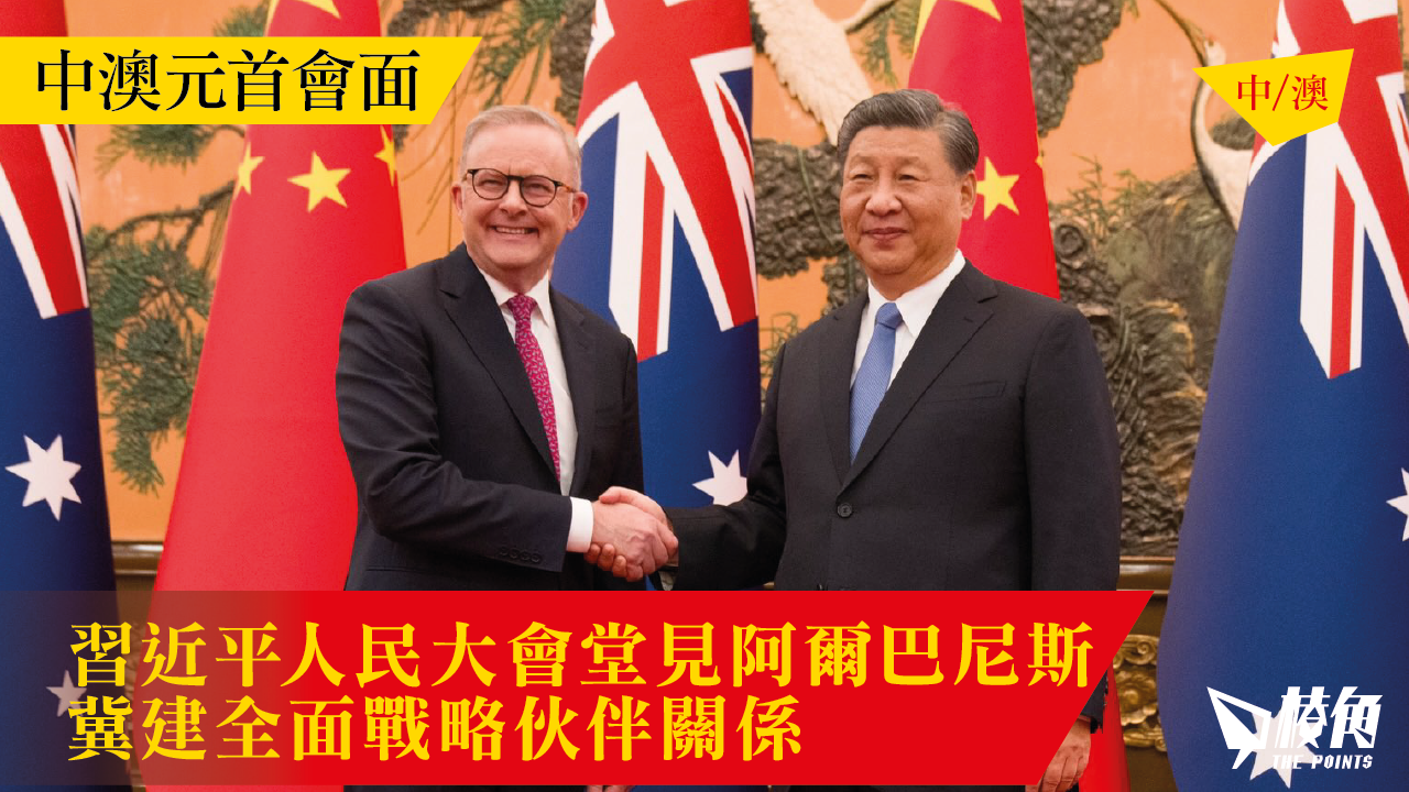 澳洲總理阿爾巴尼斯Anthony Albanese周一10月6日北京時間下午5點,在人民大會堂與中國國家主席習近平會面。習近平表示,這是中澳關係新起點,期望建立與澳洲全面戰略伙伴關係。阿爾巴尼斯則表示重啟對話,推動兩國關係向前。