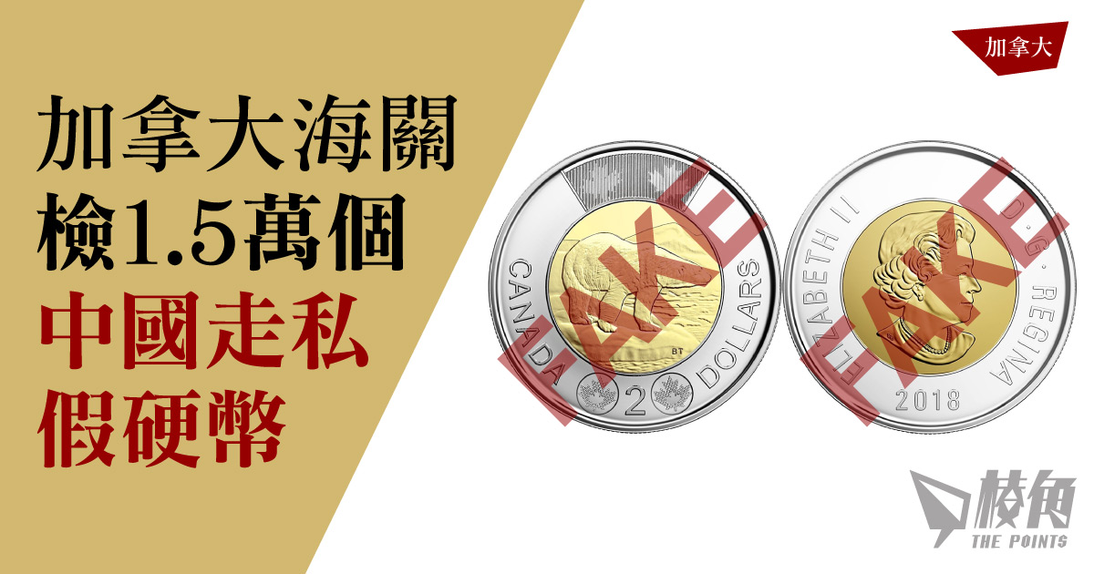 加拿大邊境服務局(CBSA)周一發新聞稿指從一直有黑市假幣從外地流入加拿大,並於年初起進行調查並打擊假幣走私問題,並於年初截獲從中國流入的假2加元硬幣。