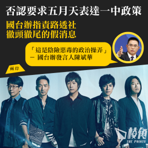 針對路透社報導有關中國廣電總局向五月天施壓,要求在台灣大選投票前表態支持北京的「一個中國」說法,中國國務院台灣事務辦公室(國台辦)28日下午針對台灣媒體提問,國台辦發言人陳斌華以書面作出回覆指,路透社的報導是「徹頭徹尾的假消息」。