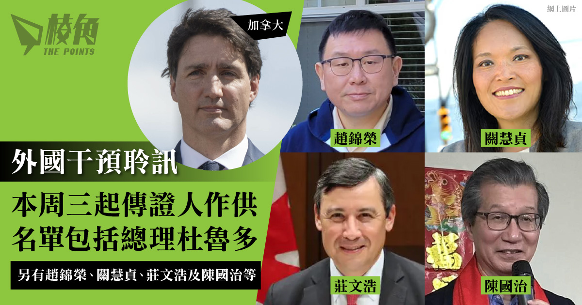 外國干預聆訊在早前完成初步聆訊後,將於本周三(3月27日)起至4月10日,傳召證人作供,正式展開聆訊。委員會於周一公布將出席的詳盡證人名單,確定總理杜魯多、他的多名幕僚、公共安全部長Dominic LeBlanc及國防部長Bill Blair等多名政府官員將會出席。不過,委員會指將於4月4日至10日的第二周聆訊才出席,次序將有待安排。