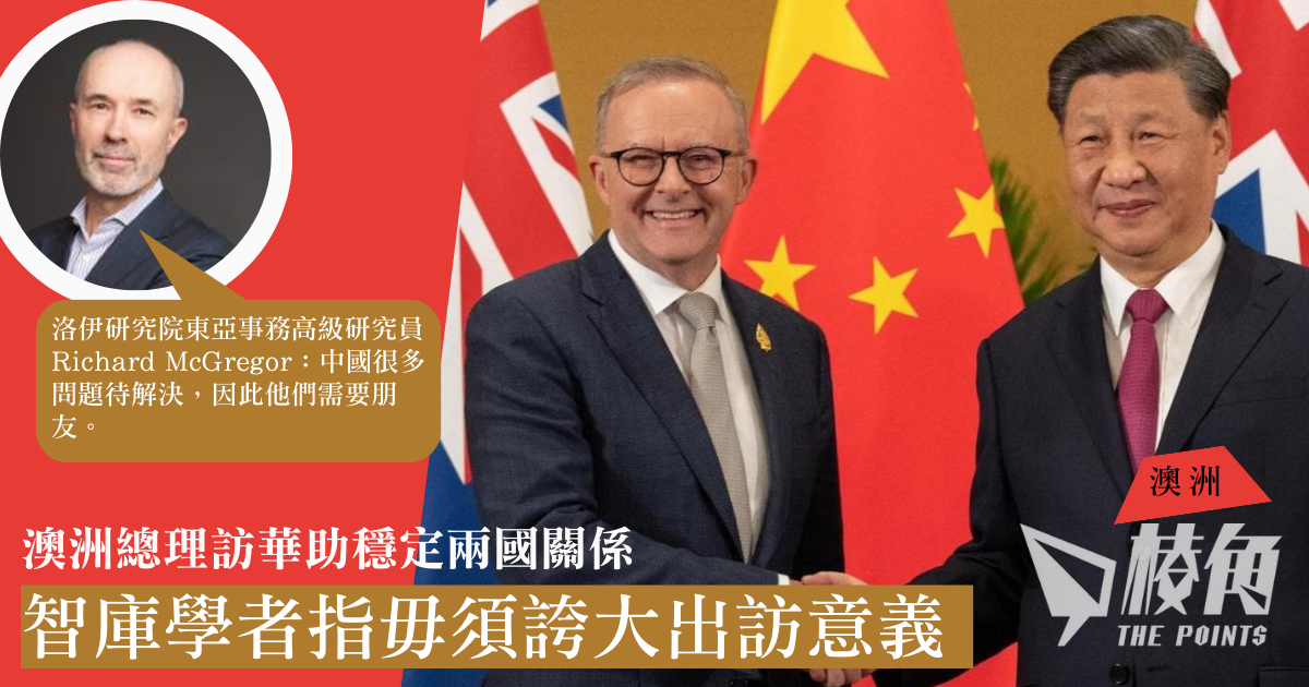 澳洲ABC電台主持人Stefanie Collet就澳洲總理阿爾巴尼斯即將訪華,上周邀請伊研究院(Lowy Institute)東亞事務高級研究員Richard McGregor在節目中討論。Richard McGregor表示,這次會面不會解決任何重要的地緣政治結構分歧,也不會解決中國對AUKUS澳英美國防聯盟的敵意,更不會使澳洲、日本、韓國、菲律賓等國家的緊密關係有任何改變。「我們不應該把這次會議看作解決一切問題的靈丹妙藥。」