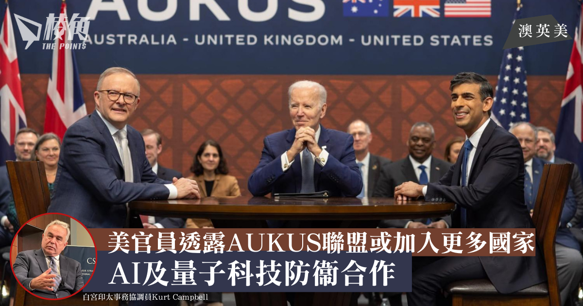 白宮印太事務協調員Kurt Campbell表示,正在與不同國家進行商談,看是否可能加入AUKUS國防聯盟的第二階段。首階段協議使得澳洲可以購買和與美英共同研發的核動力潛艇。第二階段將使得這三個國家在人工智能和量子技術等防禦能力的合作上加強鞏固。Campbell表示,他期待其他盟友和合作夥伴也能參與這些領域。