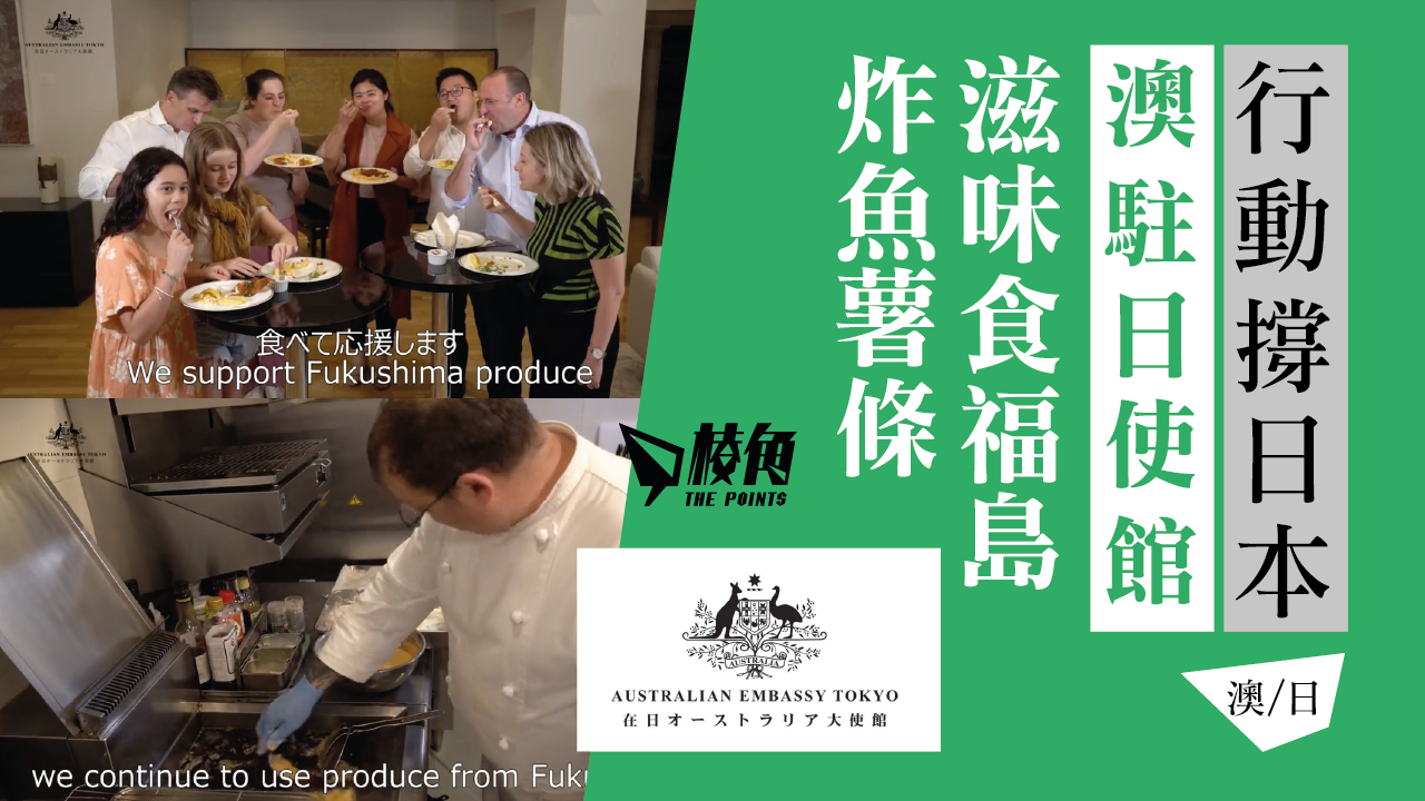 日本東京電力公司福島排核廢水,中日之間外交關係緊張,中國全面禁止日本水產入口,香港亦禁止日本10縣水產入口。中國民間對日本口誅筆伐,日本企業以至公營機構收到大量來自中國的騷擾電話。另一邊廂,日本的盟友國家則紛紛對日本表示支持,先有美國大使Rahm Emanuel親身訪問福島,並在大啖食當地水產食物。最近就輪到澳洲駐日大使Justin Hayhurst,他跟一班大使館人員,以福島的海鮮烹製澳洲人最喜歡的炸魚薯條。