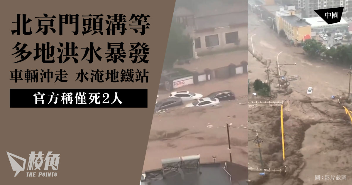 據中國《人民日報》報導,北京門頭溝區平均降雨量達320.8毫米,當地官方在今晨巡查河道時發現有2人死亡。