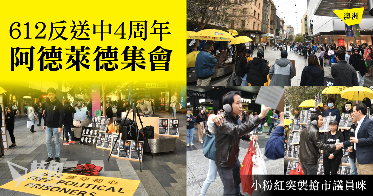 澳洲6月12日為星期一,同時也是本地的國王壽辰日假期。在雪梨、墨爾本、阿德萊德及黃金海岸都有活動。過去數年,澳中關係緊張,小粉紅偃旗息鼓一日子,令人意想不到的是,在許智峯出席的阿德萊德6.12集會上,有一名疑似中國籍男子竟然試圖搶走剛發言完畢的市議員Henry Davis手中的咪。