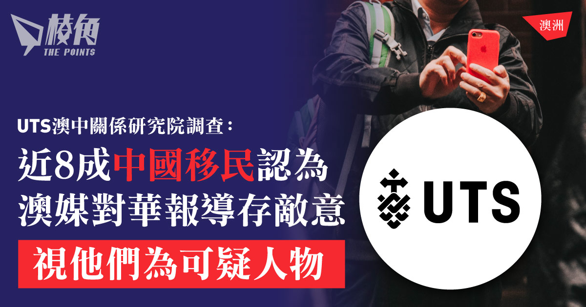 雪梨科技大學轄下的「澳中關係研究院」發表一份題為《第一代中國移民與社會凝聚力:對有關中國和澳洲華人新聞的看法》(FIRST-GENERATION PRC MIGRANTS AND SOCIAL COHESION: VIEWS ON NEWS ABOUT THE PRC AND CHINESE-AUSTRALIANS)的最新調查報告。