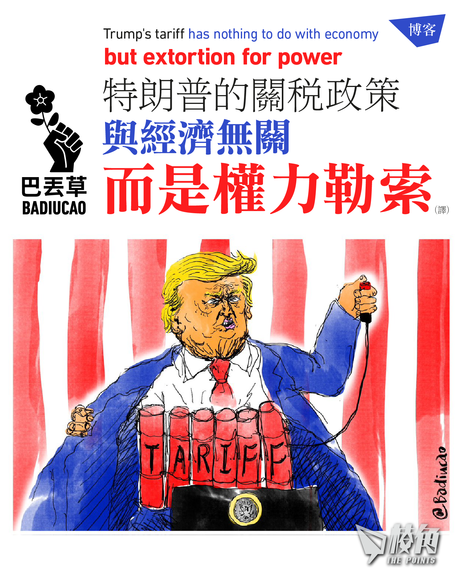【Badiucao 巴丟草】譯:特朗普的關稅政策與經濟無關,而是權力勒索