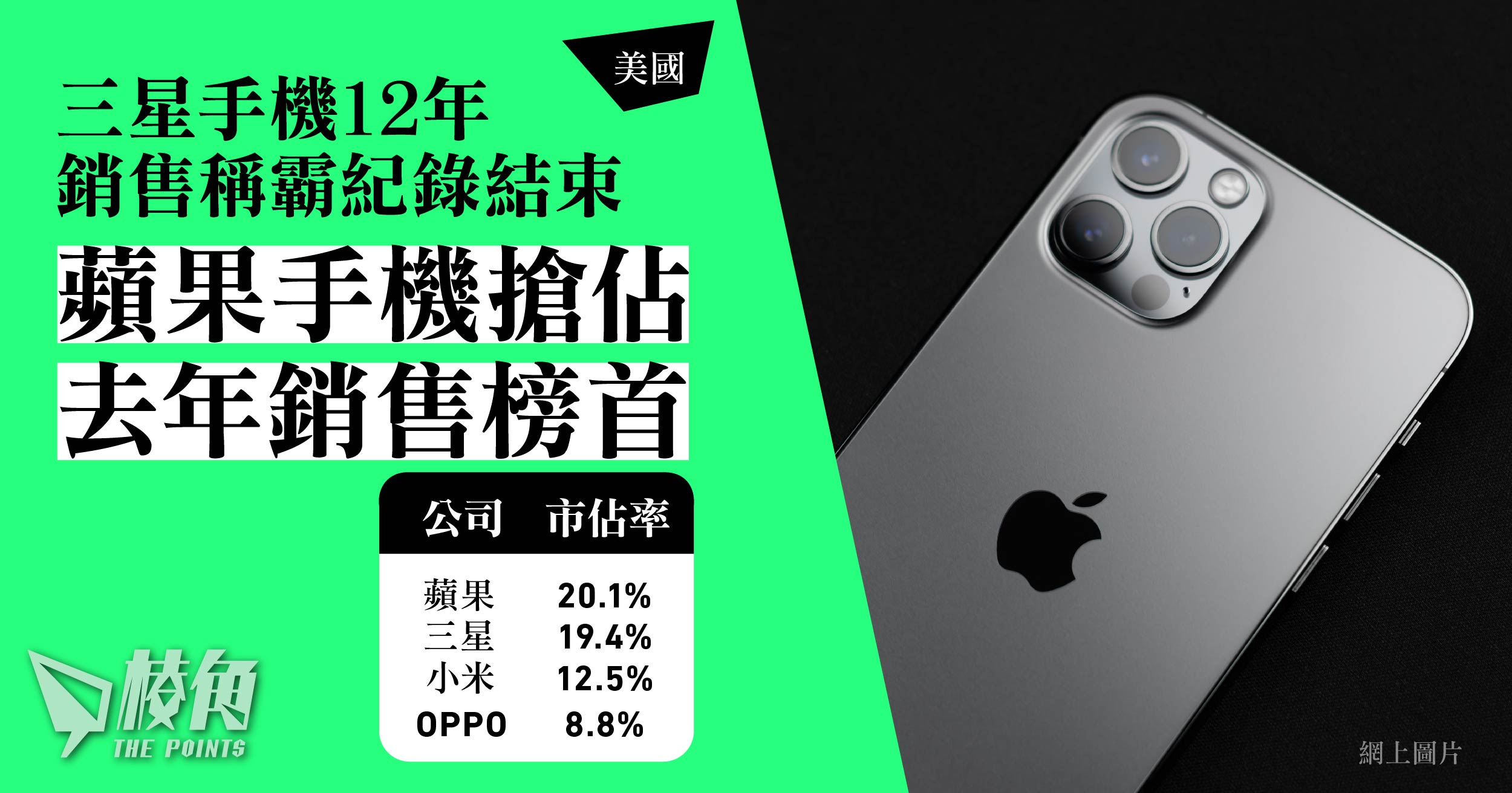 •蘋果取代三星,成為去年智能手機市場市佔率最高的公司