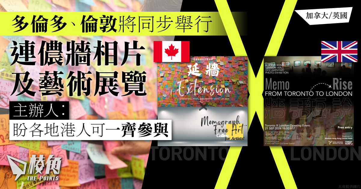 繼去年首次在加拿大多倫多舉辦《Memo-Ries!牆話短說》連儂牆展覽後,在雨傘運動十周年前夕,Blossom Hong Kong Lennon Walls團隊本周,將再在多倫多舉辦《延牆》展覽,除了有新的連儂牆相片及全球徵集的藝術創作,亦會首次同步在英國倫敦舉辦《牆話短說》展覽,屆時將會於周六(9月21日)在兩城同一時間舉辦開幕儀式,希望可集合兩地的港人一齊親身參與。