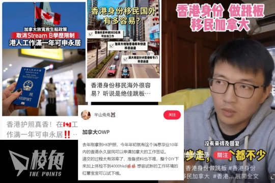 亦有移民公司在小紅書以題為「成為香港人後,竟然可以輕松移民到這些地方!」發文指,「申請香港身份,比較簡單的有以下3種,香港優才計劃、專才和高才」,而可以移民的國家包括英國、加拿大、澳洲、新加坡、美國、歐洲等。