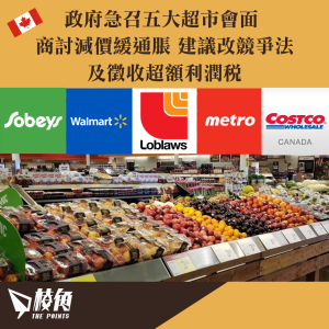 加拿大政府急召五大超市會面 商討減價緩通脹 競爭局建議收改競爭法及徵收超額利潤稅