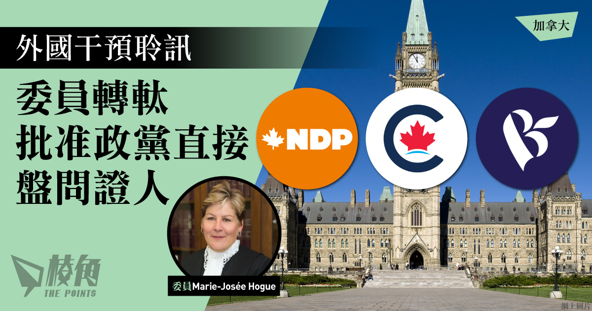 經過連月抗議之後,多個聯邦政黨終獲負責調查外國干預加拿大大選的法官Marie-Josée Hogue同意,可以在本月底展開的聆訊階段中,直接盤問將會作供的證人,以及提早閱覽各參與方提交的資料。聯邦保守黨及新民主黨都歡迎有關改動。有學者指此舉會令聆訊更透明及更有公信力。