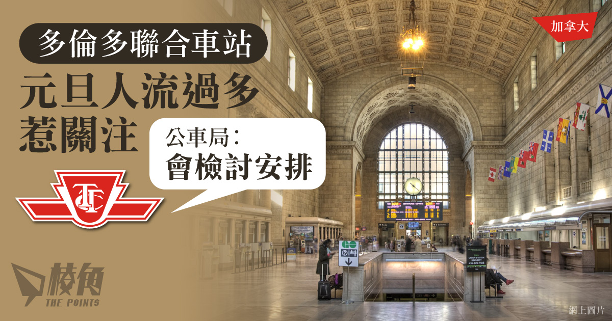 - 除夕晚多倫多聯合車站內人潮過多,乘客於站內寸步難行