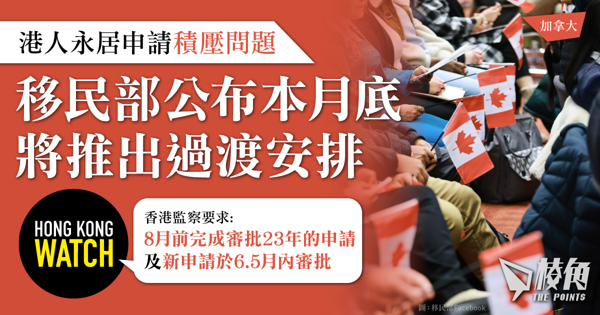 近月不少在加港人反映,向移民部提交的永久居民身份申請有嚴重積壓情況,不少申請者等侯逾年仍未獲批,更有部份申請者遇上本來的簽證到期的困境。經過多個關注團體及各黨派議員連日爭取及溝通,移民部周二公布,將於本月27日起接受提出延長簽證的申請。長期關注情況的香港監察,就要求當局於2個月內,即8月前完成處理所有於2023年提出的申請,及於6個半月內完成對新申請的批核。另外港加聯及溫支聯亦呼籲情況較緊急的港人聯絡。