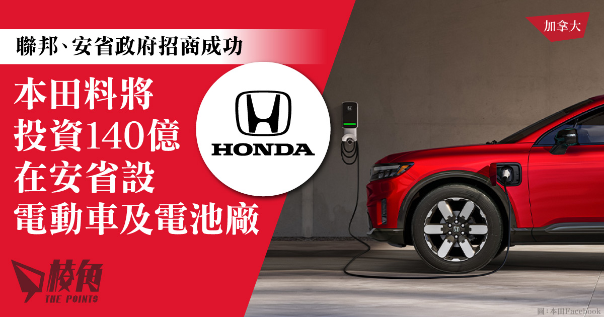 消息指,超過140億的資本投資,將主要用在擴充現時本田在多倫多以北的Alliston的汽車廠及建立新的電池廠房。此外,本田亦會物色另外兩個地點,與其他企業合作建立配件廠房。早知魁省亦有意招攬本田到該省開設廠房,但料已不能成事。