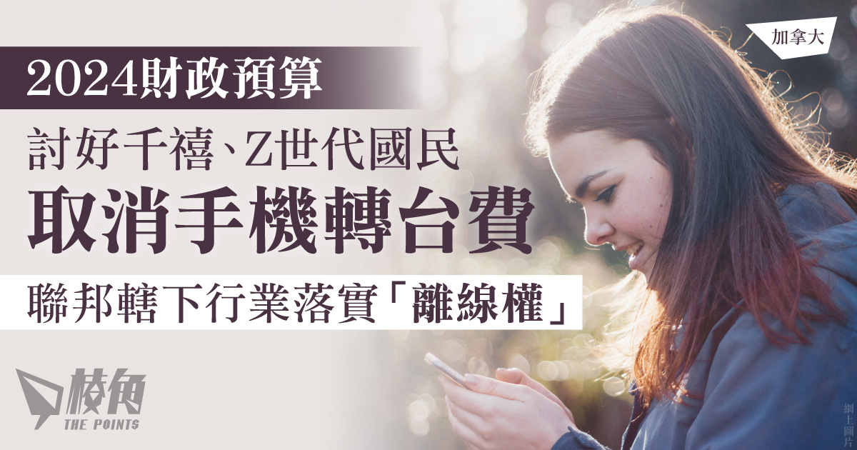 雖然加國的手機服務的價格近年已有下降,平均較2018年下跌一半,但仍然為全球手機服務最貴的地區之一。財長方慧蘭周二發表預算案時提及,為減輕國民,特別是較年青一代在使用上述電訊服務的相關開支,將會修訂有關法例,禁止電訊服務供應商收取客戶在轉台或續約時的費用,除了流動網絡,亦包括家用網絡及電話服務。
