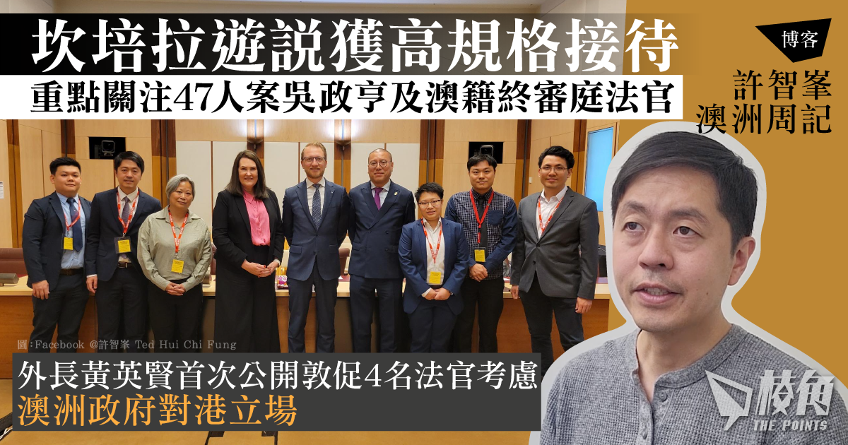 主頁 博客 【許智峯澳洲周記】坎培拉遊... 【許智峯澳洲周記】坎培拉遊說獲高規格接待 重點關注47人案吳政亨及澳籍終審庭法官 2024年12月02日 本周【許智峯澳洲周記】談坎培拉遊說獲高規格接待,重點關注47人案吳政亨及澳籍終審庭法官、外長黃英賢首次公開敦促4名法官考慮澳洲政府對港立場,決定未來是否留任。 支持我們:https://www.ls1.points-media.com/suppor