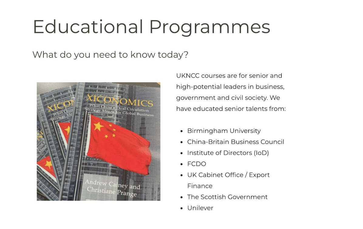 但除了香港倡議者在努力以外,中國情報機構亦非常努力破壞民主國家之間的同盟和進行認知滲透。在2023年英國國會情報委員會(Intelligence and Security Committee)發表的中國報告(Report on China)中,報告列出中國在英國有幾個情報目標,聯合海外華僑利用法律灰色地帶,目的是阻止英國政府和社會挑戰其對維吾爾、圖博等的領土主張,透過孔子學院等合作偽裝於學界、大學、智庫背後,以呈現一套對中國有利的論述,以及破壞民主國家之間的合作。中共是全方位利用每一個人員和架構在不同方面對英國構成威脅(whole-of-state approach)。筆者偶然發現一所與中共統戰部過從甚密的對華智庫——英國對華事務全國委員會(UKNCC),更聲稱為英國外交部提供中國認識訓練。