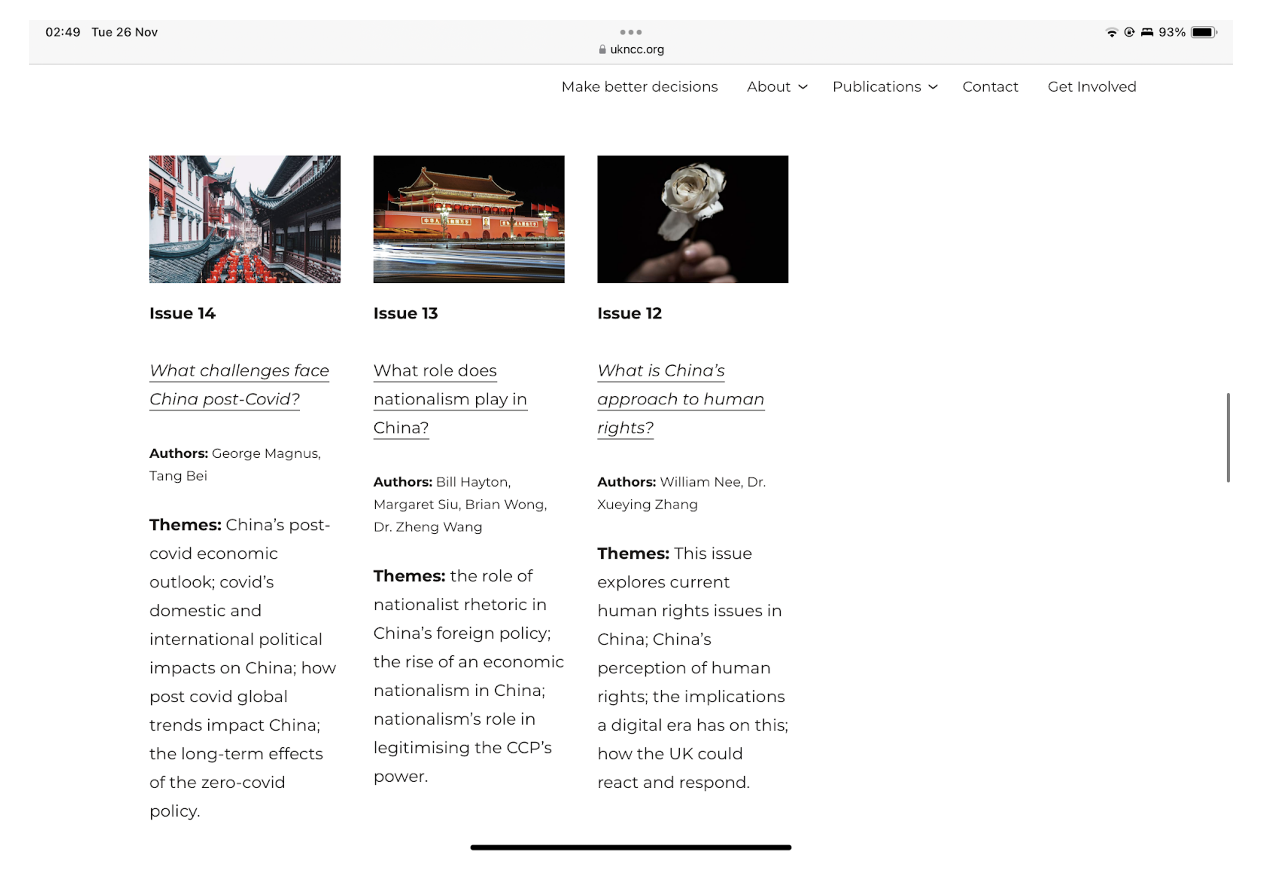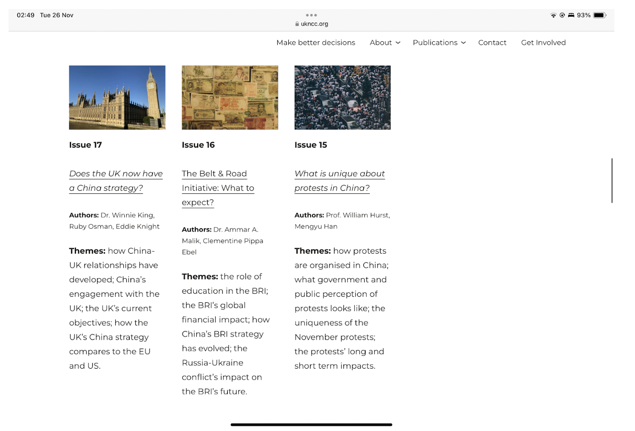 本來像這樣的智庫比比皆是,但當你深入查看,首先該機構指出其主要接受商界捐款(商界一般是最對華軟化的界別,而匯豐、Swire、City of London Corporation多年來一直捐出大量款項予親自招呼習近平訪英及給予中國間諜李貞駒影響平台的國會中國小組),宣稱自己中立、客觀獨立,不代表任何利益。固然,為表中立,他們的定期評論文章亦有包含部分學者對中國人權的批評,例如國安法或英國應為港人發聲,但隨之而來的是一大堆更詳盡的反駁及對立意見(往往留在後頭),例如:中國沒有對世界秩序構成威脅,因為中國的國家意識形態提倡和平,及願意在發展中國家之間負起維護和平的責任;透過促進數位權利改善了人權記錄;台灣人希望維持原狀,不想要獨立。香港國安法後除了政治上港獨思潮被抹走,經濟依然如往昔國際金融中心與中國市場接軌,而香港問題已成中國內部事務;維吾爾問題是美國政治化人權問題蓄意矮化中國。而當中這些貌似頭頭是道的論述,已經不知有多少進入了國會議員的郵箱裡。
