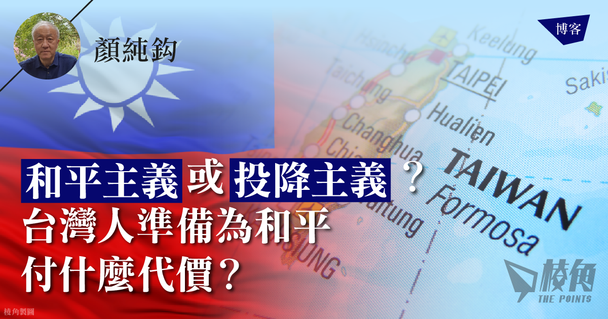和平不是終極訴求,終極訴求是和平狀態下的生存環境和生活方式。和平要用什麼代價換取,那些代價會不會比沒有和平更大——這是台灣面臨的根本問題。所謂和平,如果最終的代價是永久性地剝奪台灣人的國家認同,顛覆台灣民主先輩們浴血爭取來的政治成果,而台灣人將永遠成為中共統治下的一個順民,那麼台灣人是否願意為一種和平假相付出如此深重的政治代價?