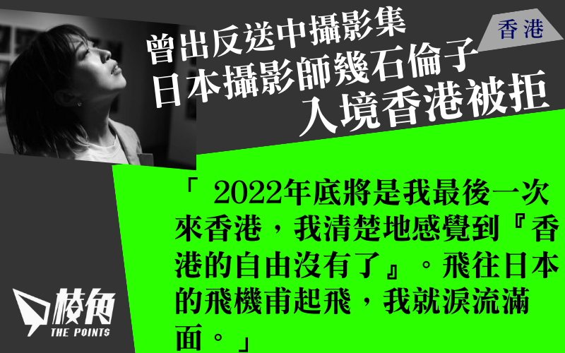 日本攝影師幾石倫子(Michiko Kiseki)去年底試圖入境香港被拒,並遭遺返日本。幾石倫子在推持發文:「我親身清楚地感覺到『香港的自由沒有了』。」幾石倫子曾來港拍攝反送中運動,並輯錄成《VOICE 香港 2019》攝影集。