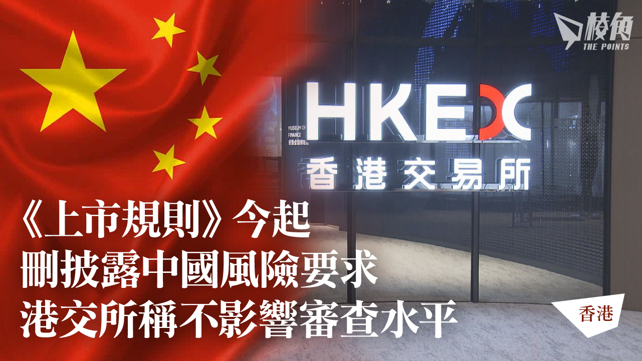早前聯交所因應中國實施中國公司境外上市的監管新規則,決定刪除香港《上市規則》內要求企業披露與中國業務的相關風險的要求。更新的《上市規則》於今日(8月1 日)正式實施,聯交所方面強調上市規則更改後,上市的審查水平並不會因而降低。