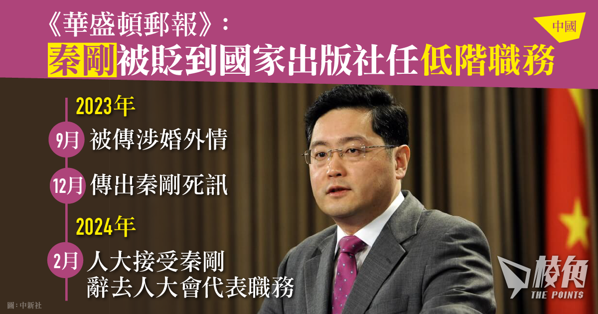 - 有美國前官員形容秦剛縱然「失寵」,但貶職意味他「已脫離險境」
