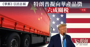 - 美國《華盛頓郵報》引述消息人士報道,特朗普在私下與團隊的談話中,透露出若重新上台,擬對所有中國製產品統一徵收60%的關稅