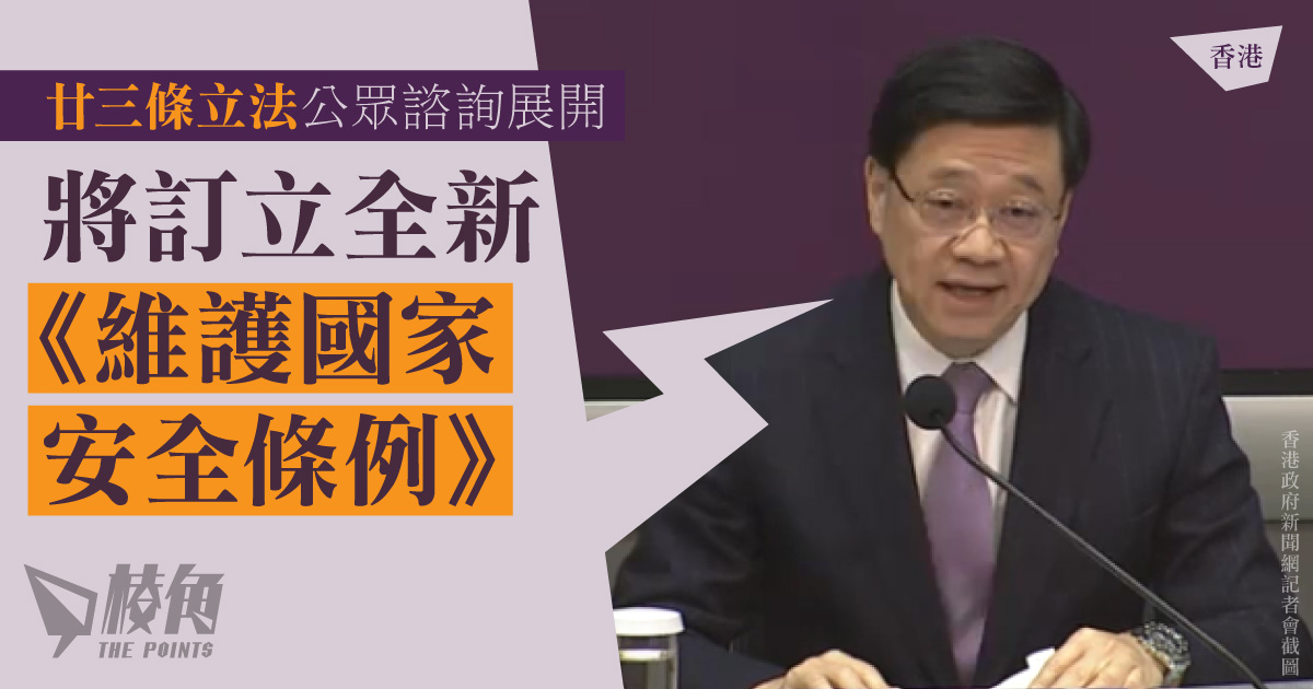 香港行政長官李家超,率領律政司司長林定國、及保安局局長鄧炳強,在周二(30日)召開「維護國家安全:基本法第二十三條立法公眾諮詢」記者會,正式宣布展開公眾諮詢程序,諮詢期至下月底。