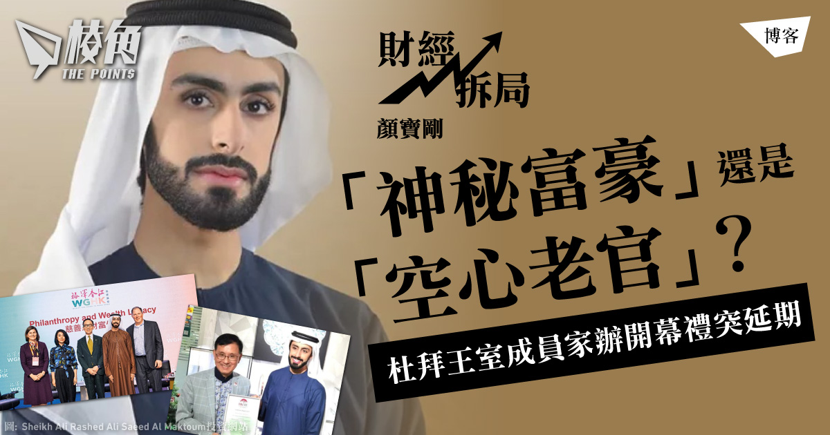 這位突然「從天而降」的神秘王室富豪,就好像看穿香港的官員非常焦急需要在23條立法後、有齊「三層背景」的家族辦公室願意落戶香港,他過去一星期可謂出盡風頭,甚至成為「說好香港故事」的生招牌。