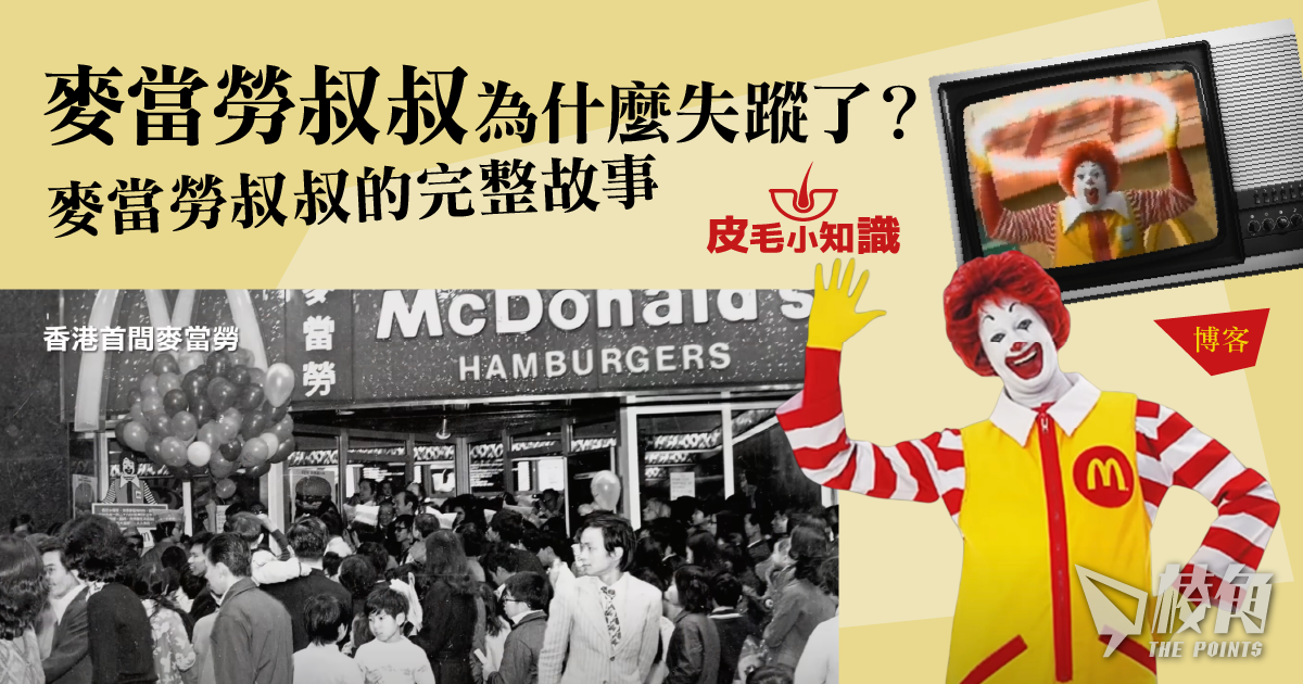 你還記得麥當勞叔叔嗎?他究竟去了哪裏?00後出生的世代又是否認識他?今次皮毛小知識會跟大家簡單講解麥當勞叔叔的前世今生,為什麼失蹤了?