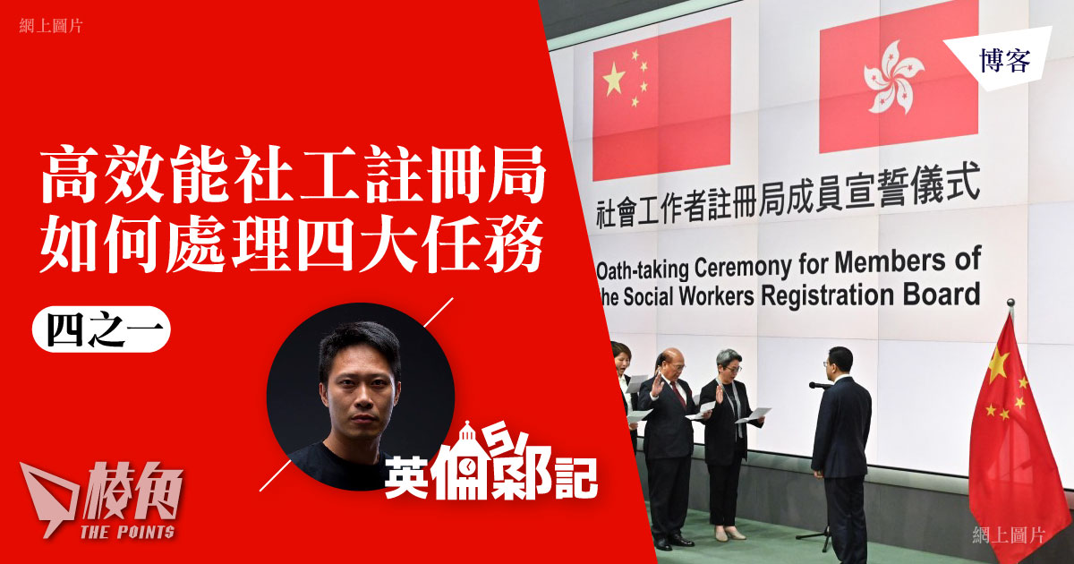 繼四月有人放風予傳媒指註冊局問題多多,五月勞福局局長撰文指責註冊局民選成員不是,隨之政府刊憲修改社工註冊條例,七月初立法會三讀通過之,七名民選註冊局成員請辭後,政府遂委任多名人士加入新社工註冊局。現任主席一上場,就表示當務之急是政府提出的四大任務。筆者會分四篇文章逐一讓讀者了解四大任務的內容。