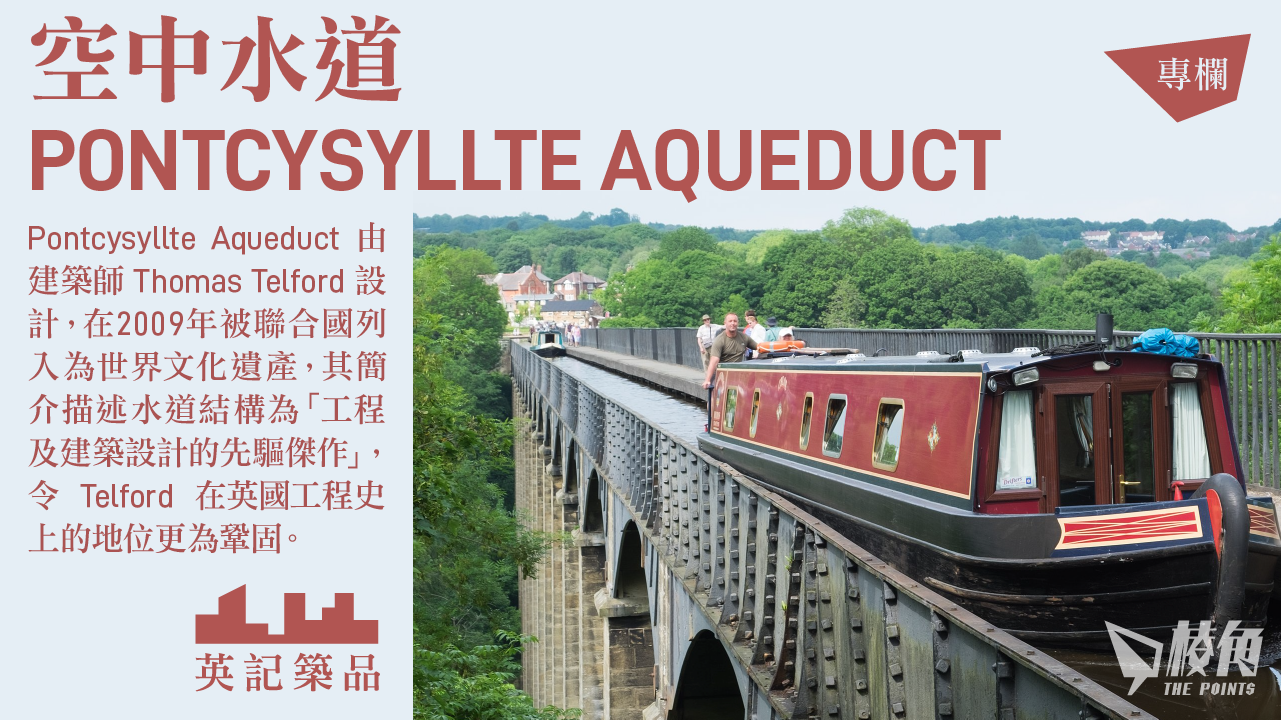 位於威爾斯東北部的 Pontcysyllte Aqueduct (威語為 Traphont Ddŵr Pontcysyllte) 於1805年完工,除了是英國最闊及最長的人工引水道橋樑外,亦是世界上最高最長的運河引水道,見證了英國工業革命的輝煌成就。