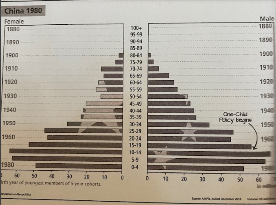 中國80年後的經濟奇蹟,其中一個重要因素是一孩政策帶來30年的「人口紅利」(demographic dividend),正好配合了改革開放和全球化。「人口紅利」是指適齡工作人口(指15-64歲)在人口比例中大幅增加,人口還未老化而出生率卻迅速下降,使「撫養率」(dependency ratio)下跌,這階段生產力會隨著適齡工人增多而增加。假如一個國家能好好利用人口紅利,用大量廉價勞工增加出口賺取外匯,引導工人把收入用於消費和買房子,工人的儲蓄則通過銀行借貸投資工商業,經濟繁榮自然隨之而來。人口紅利所形成的積極反饋(positive feedback)其實正好解釋東亞多國,如日本、南韓、台灣、越南和星馬泰等,為何在某一時段經濟會突然迅速發展起來。