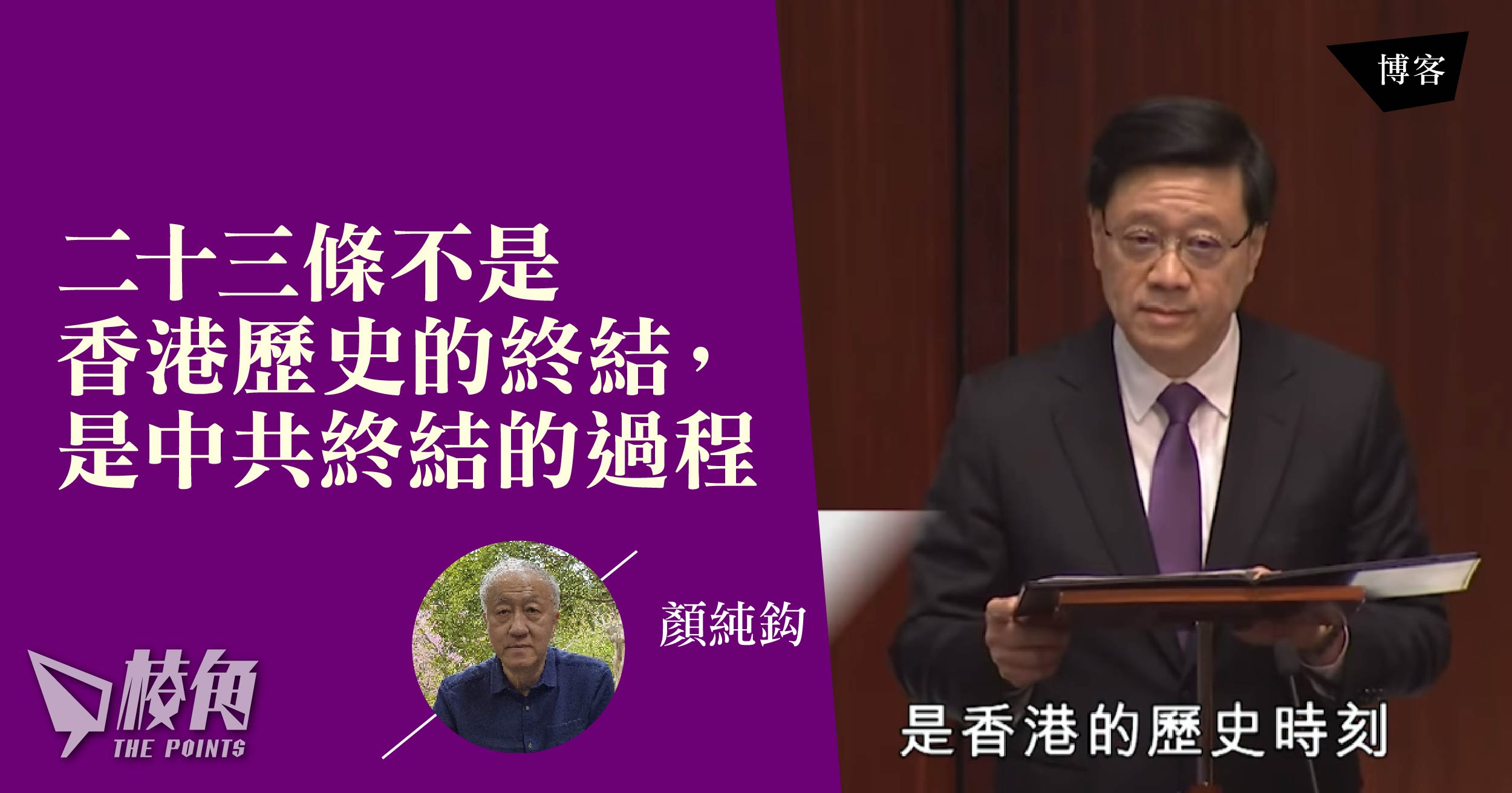 因此我們今日看待二十三條,千萬不要把它看作是香港命運的終結,香港終結不終結,不由中共說了算,決定權在香港人手上。歷史不會站在中共一邊,因為古今中外,沒有一個獨裁者最終掌握了歷史的主動權,他們到最後都只是歷史的罪人。