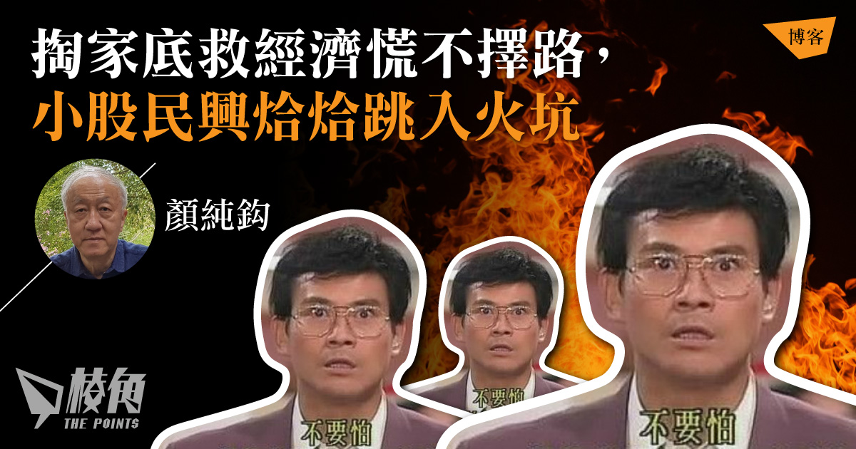 小股民以為政府萬能,見政府掏空口袋傾巢而出,只擔心「輸在起跑線」,氣急敗壞入市,一路發橫財夢,一路吃驚風散,直到被政府收割方才罷休。