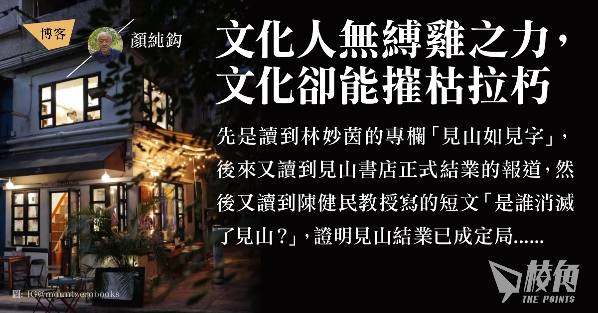 先是讀到林妙茵的專欄「見山如見字」,後來又讀到見山書店正式結業的報道,然後又讀到陳健民教授寫的短文「是誰消滅了見山?」,證明見山結業已成定局。